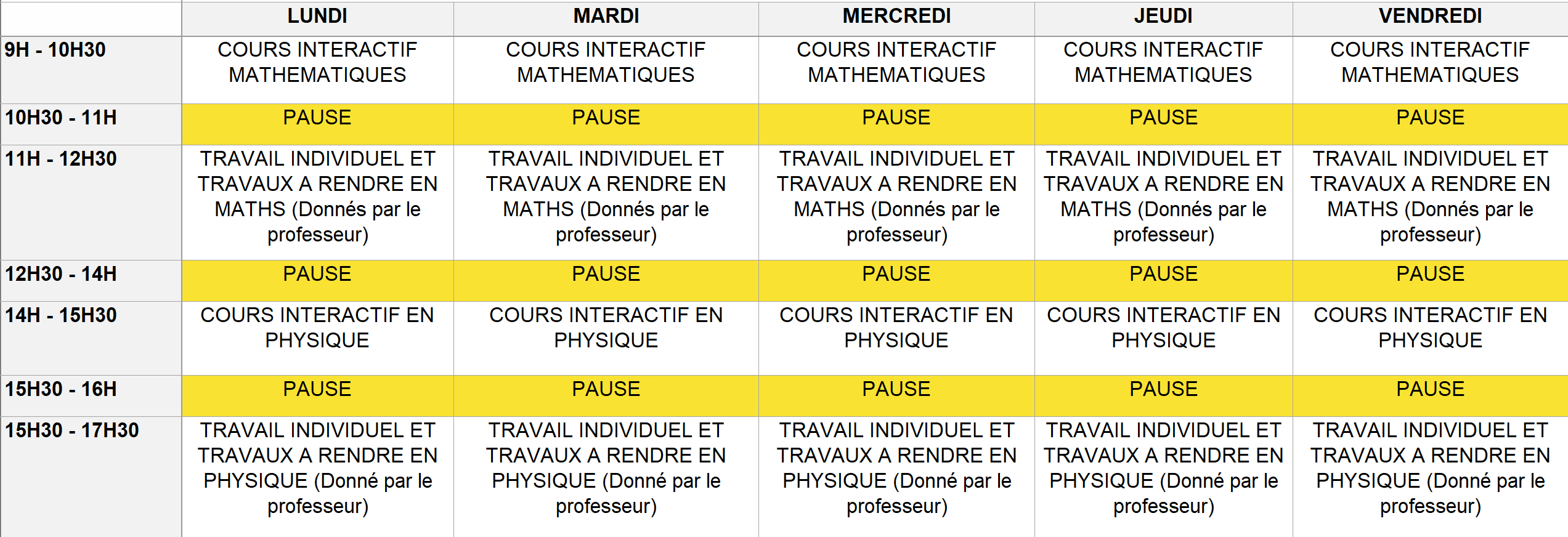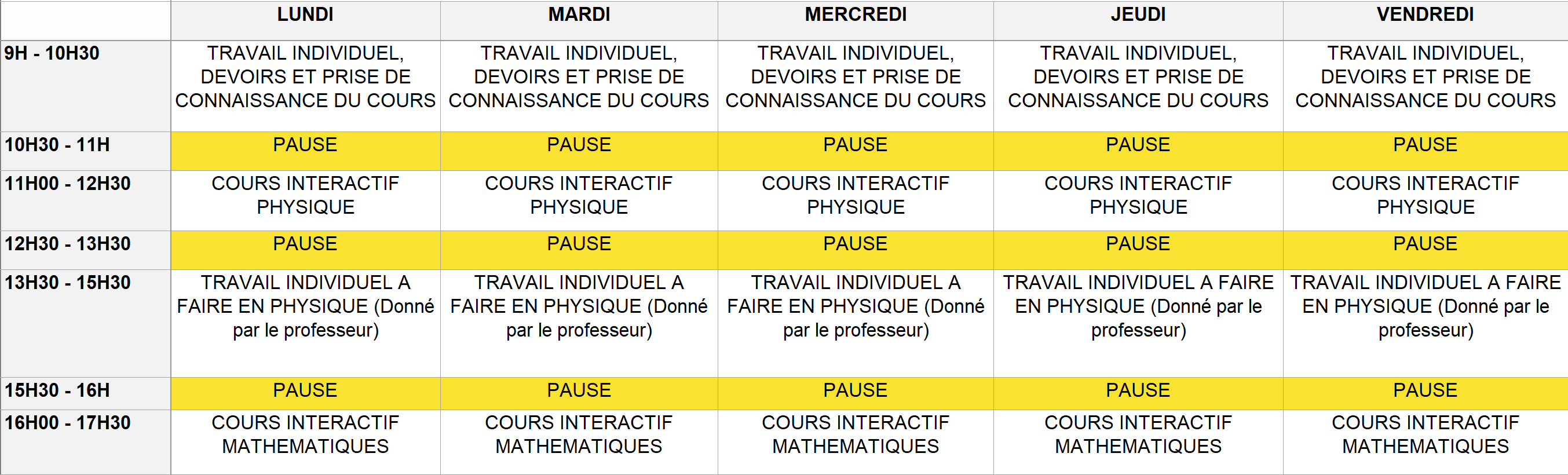 Emploi de temps : Groupe A